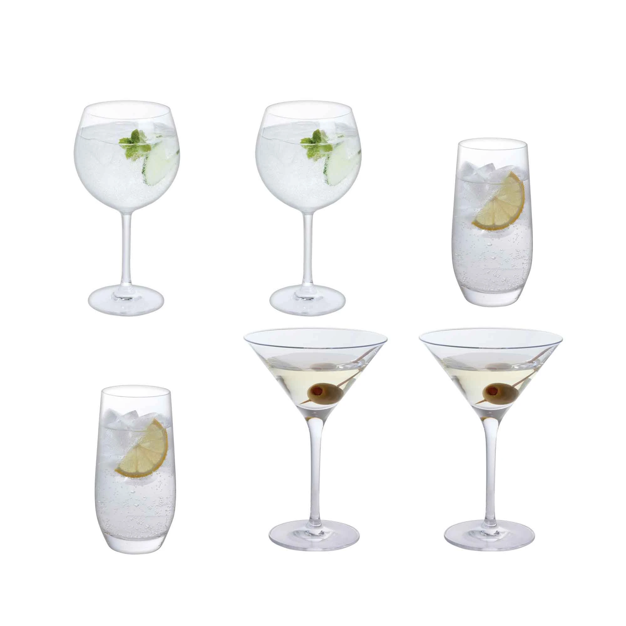 Set of six great glasses created for gin lovers. A pair each of Gin Copa, Martini and Highball glasses lets you mix and serve a fine G&T and a range of classic cocktails. An ideal choice for any gin occasion and makes a great gift.