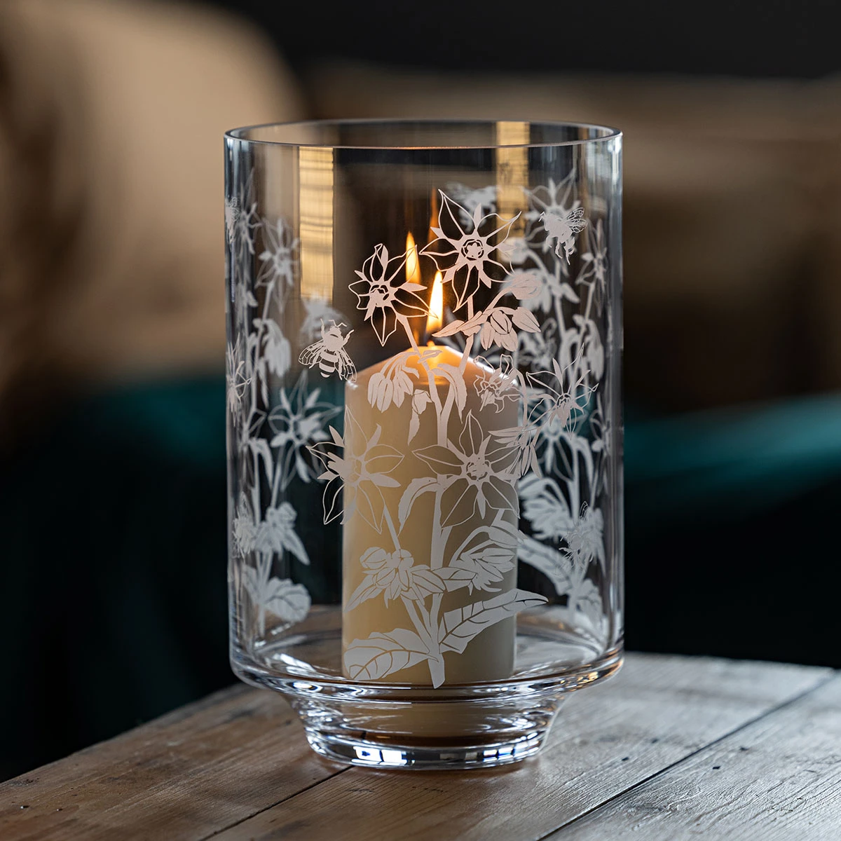 Beautifully crafted, the Bloom Bees & Star Flowers Hurricane Lamp is the perfect addition to your home decor. From our delicate collection of glass vases, accessories and unique pieces, this hurricane lamp stands out with its intricate engravings of bees and star flowers. Its ornamental design makes it both a functional and decorative piece that lights up any room in your house.