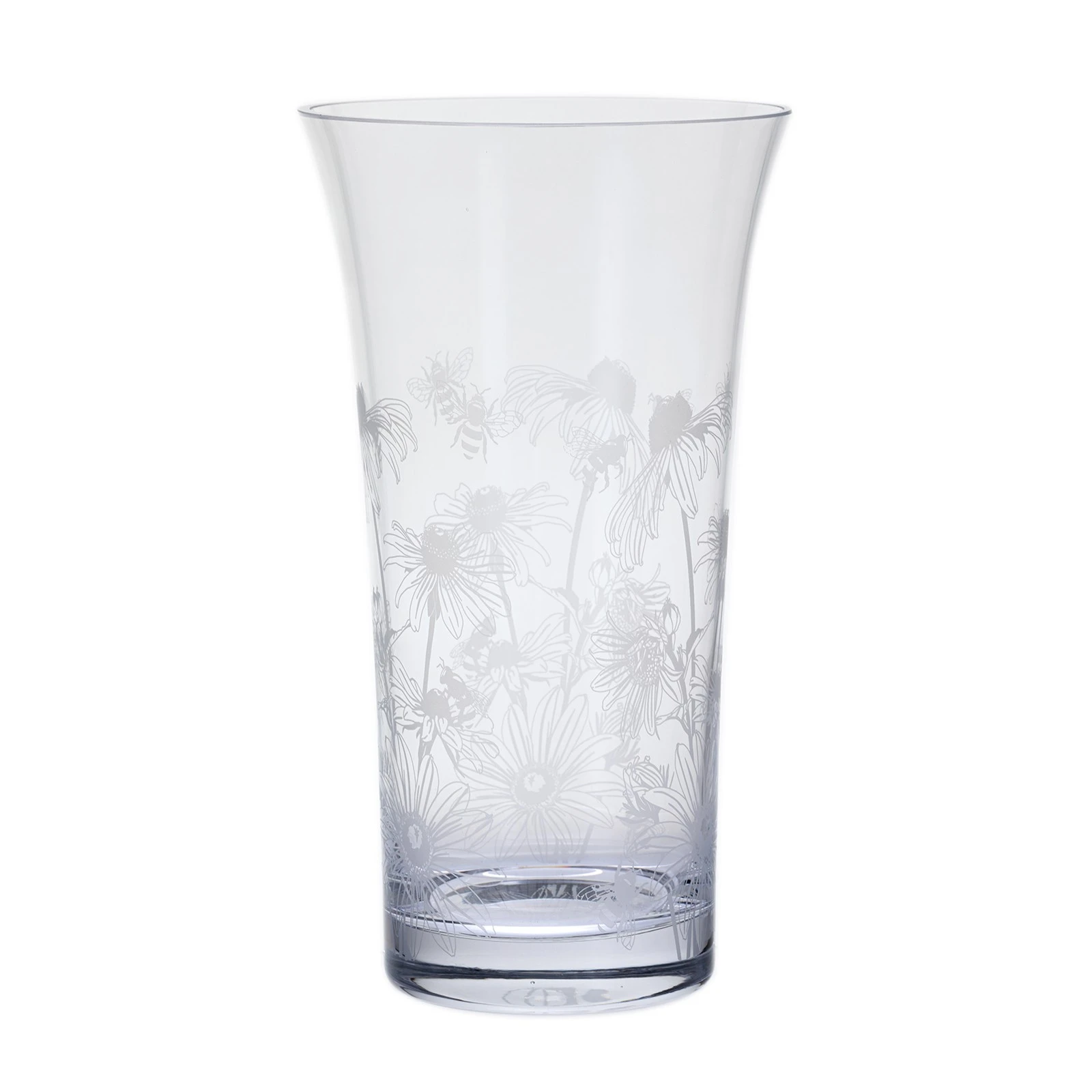 Bloom is a collection of lovely hand-made vases, each elegantly finished with an etch-decorated bloom. This stunning flared vase is decorated with Bees & Rudbeckia. It is a perfect gift or addition to your living space.