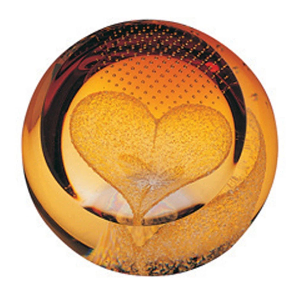 A meaningful accent piece, this paperweight features a golden heart enveloped in tiny bubbles. Handcrafted in Scotland as a symbol of love and kindness to give as a heartfelt gift or special keepsake.