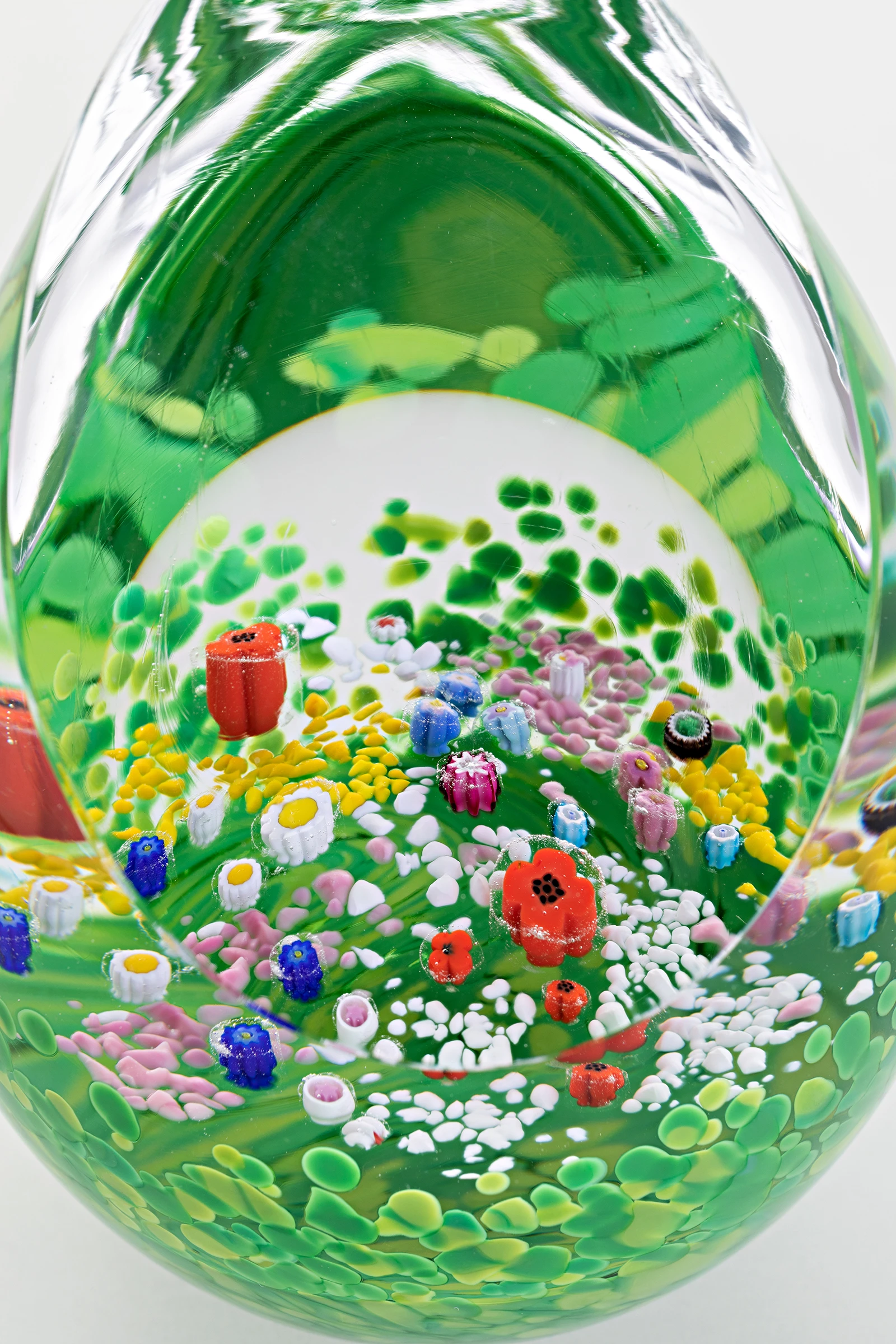 These handmade luxury paperweights are truly a sight to behold. Each one is unique, with its own colorful glass chips and Millefiori flowers. They make a beautiful addition to any home or office, and make a great gift for that special someone.